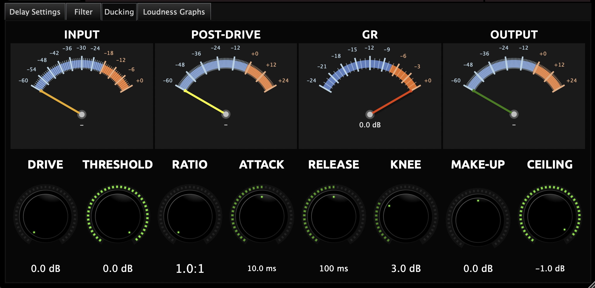 • Built-in compressor: Keep your delays controlled or use ducking to make them step aside when your dry signal plays