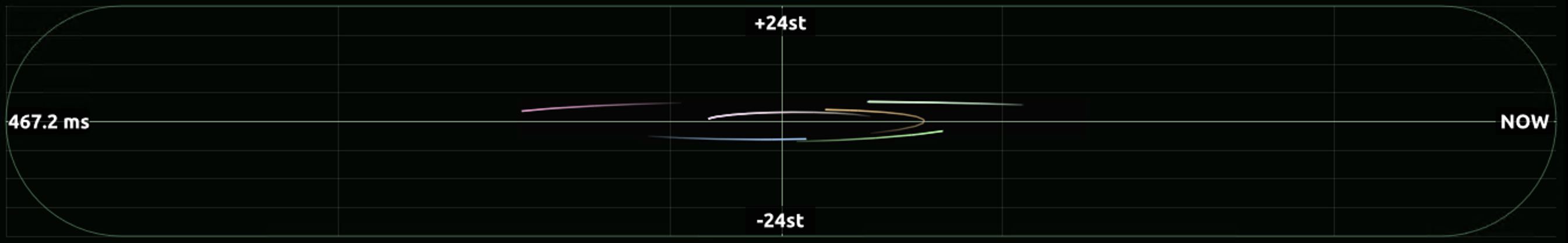 • Animated delay scope: Watch your delay taps move through time with pitch markers showing ±24 semitones